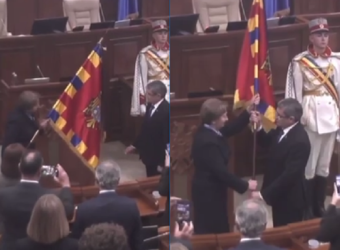 Situație stânjenitoare în Parlament. Igor Grosu care a fost reales astăzi în calitate de președinte al Legislativului, a participat la ceremonia de înmânare a Stindardului. În timpul momentului solemn, speakerul se pare că a uitat ce trebuie să facă.