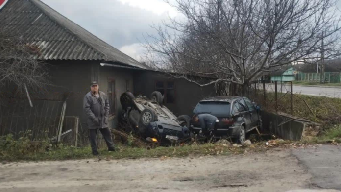 (foto/video) Un BMW și o Dacia au ajuns într-o gospodărie, după un accident la Orhei: Un șofer, transportat la spital. Cum s-a produs impactul
