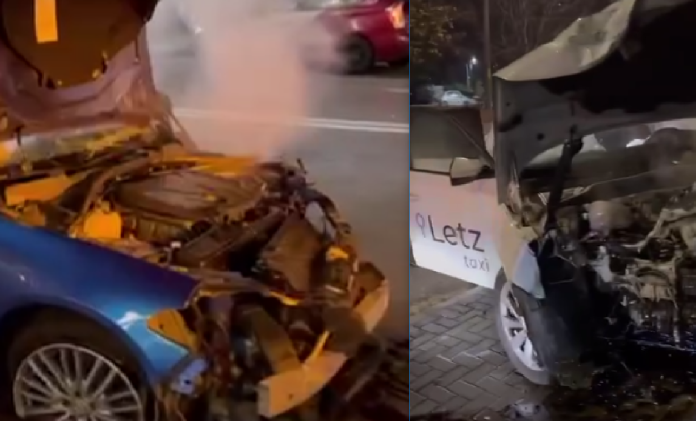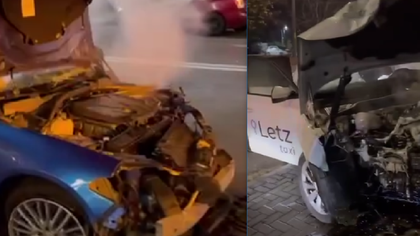 (video) O mașină de taxi și un Alfa Romeo, făcute zob într-un accident pe bulevardul Traian: Două persoane, transportate la spital