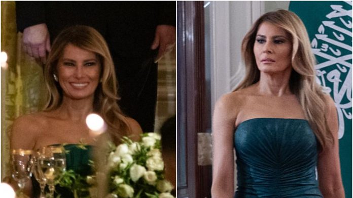 Melania Trump a făcut, din nou, ceea ce știe cel mai bine: a captat instant atenția tuturor cu o apariție studiată în cel mai mic detaliu. Prima Doamnă a SUA a purtat, la un dineu fastuos pentru prințul moștenitor Mohammed bin Salman, o rochie cu umerii goi, verde-smarald, o nuanță aleasă evident nu doar pentru efectul glam, ci și pentru subtila trimitere la culoarea drapelului saudit, scrie protv.ro.