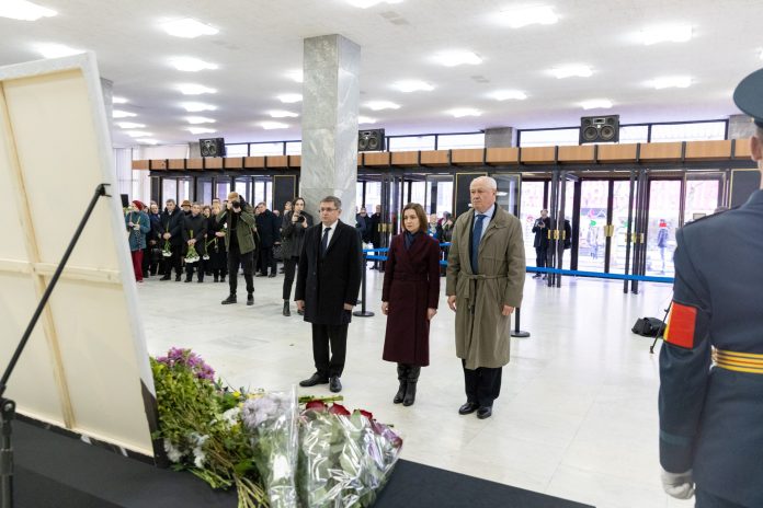 (foto) Maia Sandu, Igor Grosu și Alexandu Munteanu, cu flori la fotografia lui Ilie Ilașcu, de la Palatul Național: Un simbol al luptei pentru suveranitatea și integritatea RM