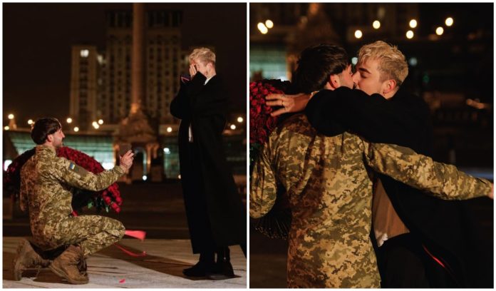(foto/video) Inel cu 10 diamante și 501 de trandafiri. Unul dintre cei mai cunoscuți artiști pop din Ucraina s-a logodit cu un paramedic militar: „Dragostea nu cere voie”