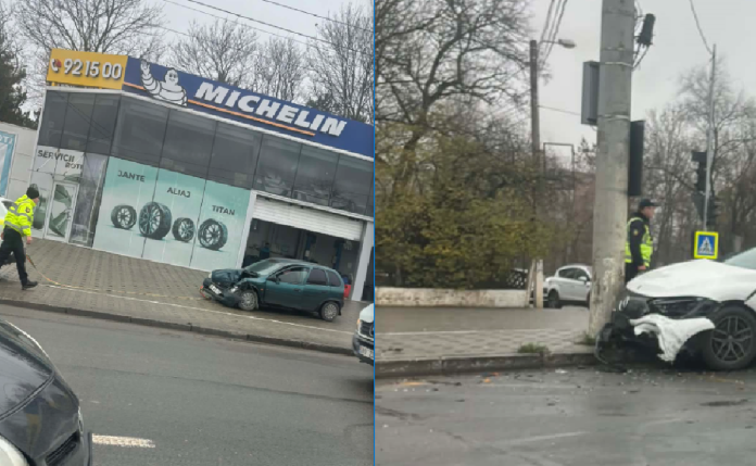 (foto) Accident pe strada Grenoble: Un Mercedes a ajuns într-un stâlp, după ce s-a lovit cu un Opel