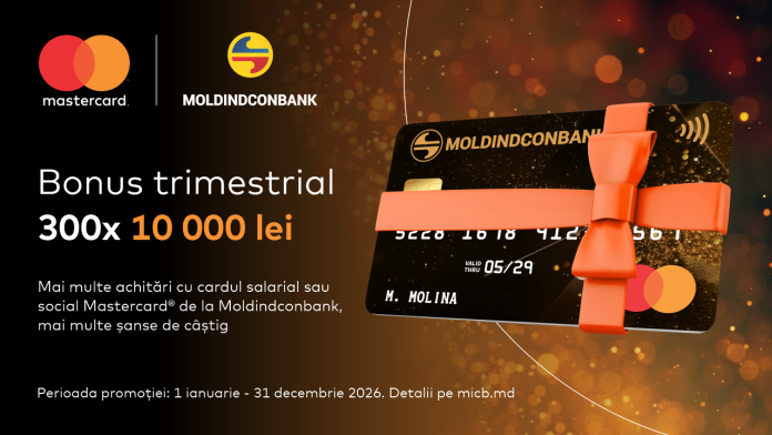Moldindconbank lansează o nouă promoție care transformă plățile obișnuite într-o experiență care îți poate aduce beneficii suplimentare importante. Pe parcursul anului 2026, utilizarea cardului Mastercard de la Moldindconbank, fie că este un card salarial sau social, poate aduce un premiu bănesc de 10 000 de lei, fără înscriere prealabilă sau pași suplimentari.