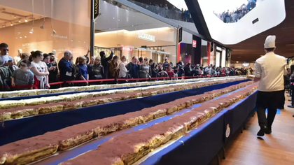 Recordul pentru cel mai lung tiramisu din lume a fost doborât la Londra. O sută de bucătari italieni s-au adunat sâmbătă și duminică la Primăria din Chelsea pentru a prepara un tiramisu suficient de lung încât să doboare recordul anterior stabilit de milanezul Galbani la Milano, care era de 273,5 metri, scrie observatornews.ro.
