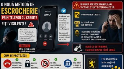 Poliția atenționează cetățenii despre apariția unei noi metode de înșelăciune, prin care persoane necunoscute contactează telefonic potențiale victime, pretinzând că sunt reprezentanți ai instituțiilor bancare sau ai organelor de drept.